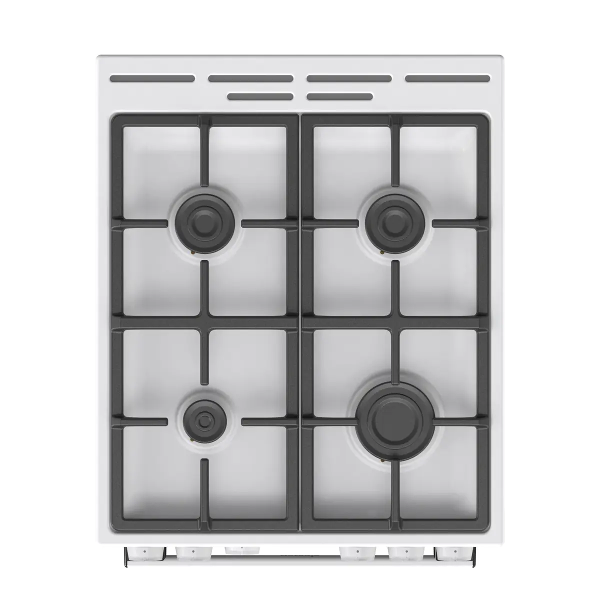 4 газовые конфоркиПередняя левая: малая Ø 5,4 см, 1 кВт, Передняя правая: большая Ø 9,9 см, 3 кВт, Задняя левая: нормальная Ø 7,4 см, 1,9 кВт, Задняя правая: нормальная Ø 7,7 см, 1,9 кВт