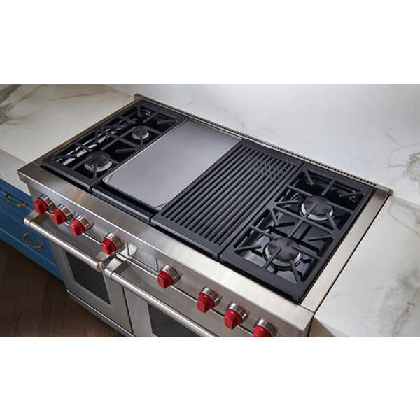 Кухонный блок ICBDF48450CG выполнен из прочной, высококачественной нержавеющей стали, укомплектован удобной цилиндрической ручкой. Переключатели управления могут быть выполнены в трёх цветах: фирменном красном, чёрном либо стальном. Благодаря такому стилистическому решению, ICBDF48450CG создаёт целостные образы как частных, так и профессиональных кухонных зон, прекрасно сочетаясь со всей линейкой приборов Sub-Zero/Wolf.