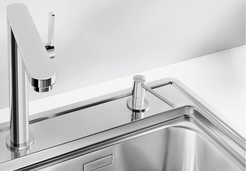 Дозатор TORRE 512593 от Blanco воплощает философию бескомпромиссного качества, инновационного дизайна и функциональности, превращая самое активное место на кухне в продуманный, эргономичный и эстетичный центр для приготовления пищи.
